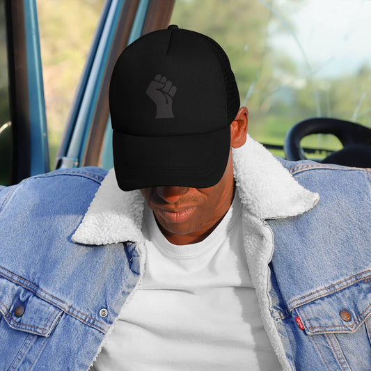 Black On Black Power Fist Embroidered Trucker Cap